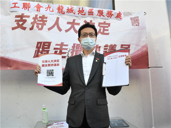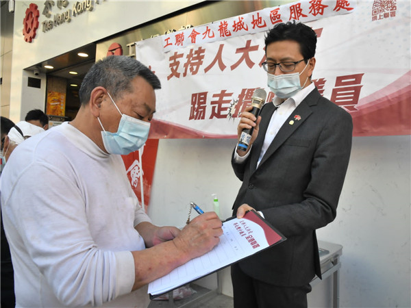 香港工聯會今日(12日)開始一連7日在全港設立85個街站,舉行「支持人大決定,踢走攬炒議員」簽名行動,讓市民簽名表達支持,今日全港大街小巷都有市民踴躍簽名,期間不時有市民拍手歡呼叫好。