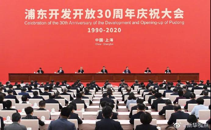 在熱烈的掌聲中,習近平發表重要講話。他強調,30年前,黨中央全面研判國際國內大勢,統籌把握改革發展大局,作出了開發開放上海浦東的重大決策,掀開了我國改革開放向縱深推進的嶄新篇章。黨中央對浦東開發開放高度重視、寄予厚望,強調以上海浦東開發開放為龍頭,進一步開放長江沿岸城市,儘快把上海建成國際經濟、金融、貿易中心之一,帶動長江三角洲和整個長江流域地區經濟的新飛躍,要求浦東在擴大開放、自主創新等方面走在前列。進入新時代,黨中央繼續對浦東開發開放提出明確要求,把一系列國家戰略任務放在浦東,推動浦東開發開放不斷展現新氣象。