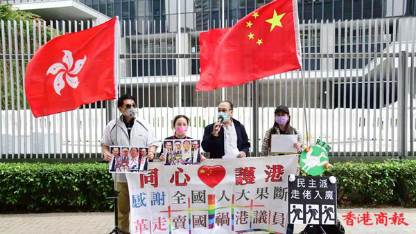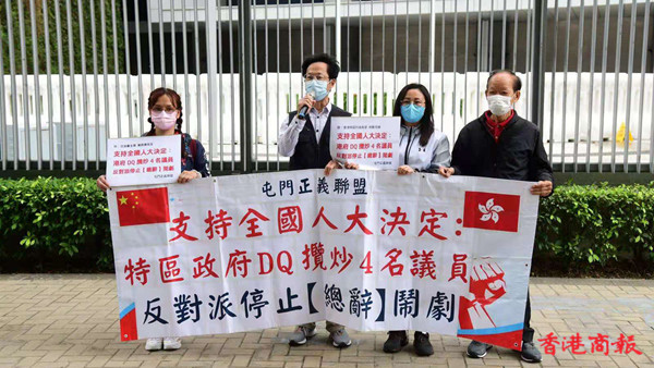 工聯會九龍東總幹事鄧家彪表示,歡迎人大常委會及特區政府的決定,認為此舉可以撥亂反正。他指,不少市民、工友都反映,攬炒派長期在立法會「拉布」,癱瘓議會,影響政府施政,令社會怨聲載道。大家都期望議員應帶頭齊心抗疫,支持政府推出刺激經濟、保障就業的措施。鄧家彪强调,香港的政治、經濟、民生、法治都要重回正軌,市民安居樂業,香港人有安穩的社會,香港才有出路。