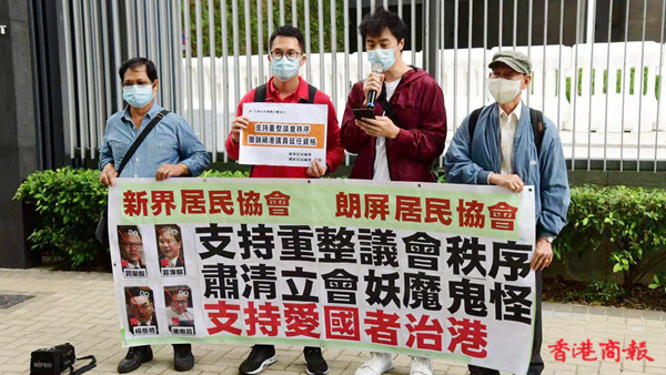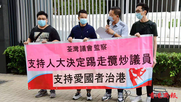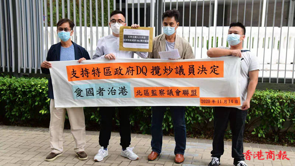 工聯會九龍東及九龍西團隊、保衛香港運動、監察攬炒議員大聯盟、同心護港、監督議會聯盟、北區監察議會聯盟、屯門正義聯盟、新界居民協會、荃灣議會監察等多個團體,今日到立法會外請願,表明全力支持人大常委會就立法會議員資格的決定。
