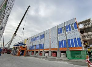 臨時醫院是香港首間採用「組裝合成」(MiC)建築技術興建的負壓隔離病房醫院,當中標準化病房由3個模組單元組成,在廠房生產後,運抵工地裝嵌。