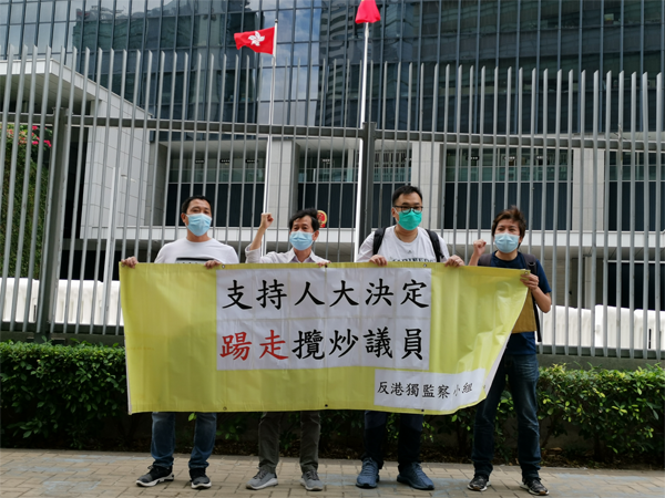 反港獨監察小組指,它們支持政府根據全國人大常務委員會的決定去處理立法會議員資格的問題。