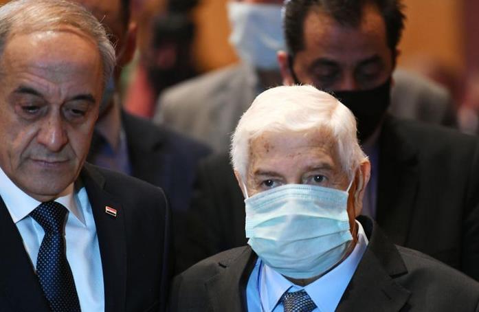 這是11月11日,敘利亞外長瓦利德·穆阿利姆(右)在大馬士革出席敘利亞難民回歸國際會議。