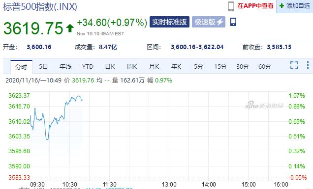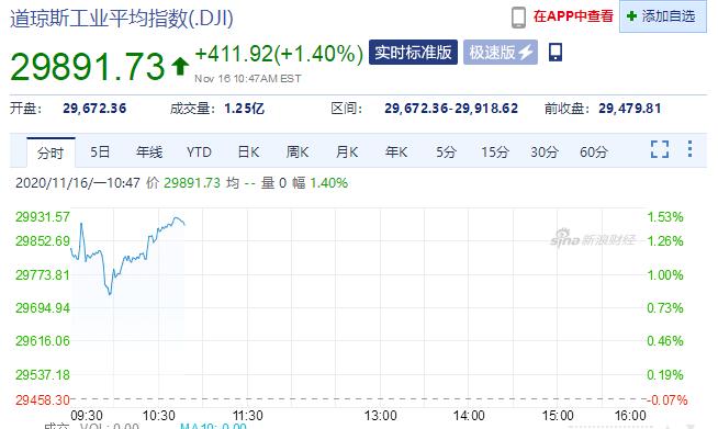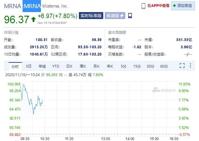 本港時間周一晚間,Moderna Inc.(MRNA.Nasdaq)發布報告稱,其新冠疫苗的保質期更長,公司報告稱在冰箱溫度下可維持穩定30天,三期試驗新冠疫苗有效性為94.5%。消息發布之後,Moderna美股盤前漲幅一路擴大至10%以上。美股開市後,Moderna跳上100美元開盤,盤中最高見103.2美元創歷史新高。受此利好影響,當晚美股高開,道指逼近3萬點。標普指數繼上周五創歷史最高收盤紀錄後再創新高。原油期貨價格大漲。