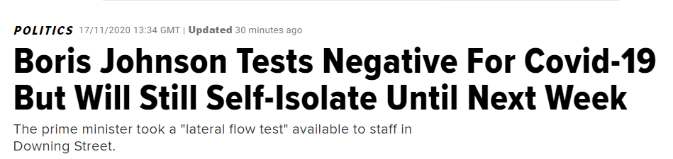 此前,據媒體報道,約翰遜於12日在唐寧街會見議員,其中包括保守黨的李·安德森。隨後,安德森出現了新冠病毒感染症狀,並在檢測中呈陽性。約翰遜因此進入隔離,並在推特上發文稱自己未出現任何症狀,將繼續其工作。
