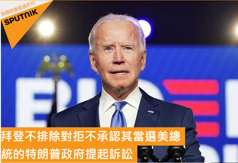 據俄羅斯衛星網消息,美國「當選總統」拜登當地時間19日表示,他不排除對拒不承認其「當選總統」的特朗普政府提起訴訟。