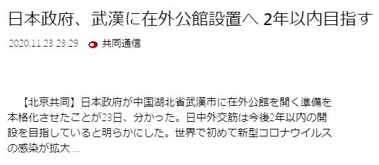此外,日媒《共同社》引述消息指,日本正計劃兩年內在武漢設立領事館。報道指,武漢是中國中部的商業和交通中心,日本商界一直有聲音要求設立領事館。