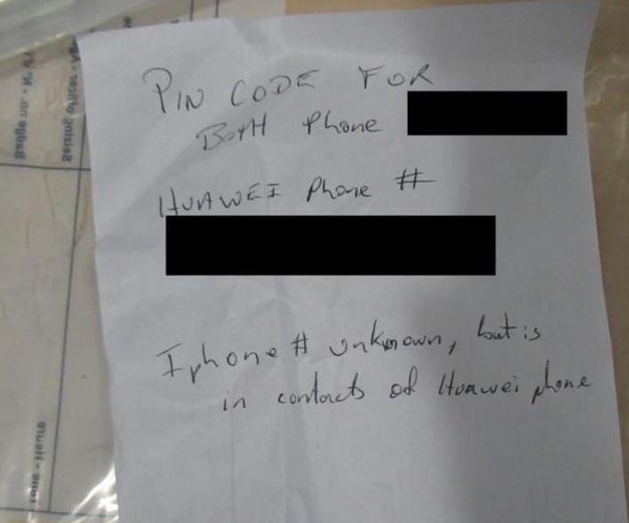 寫有孟晚舟手機密碼的紙條。圖源:央視新聞