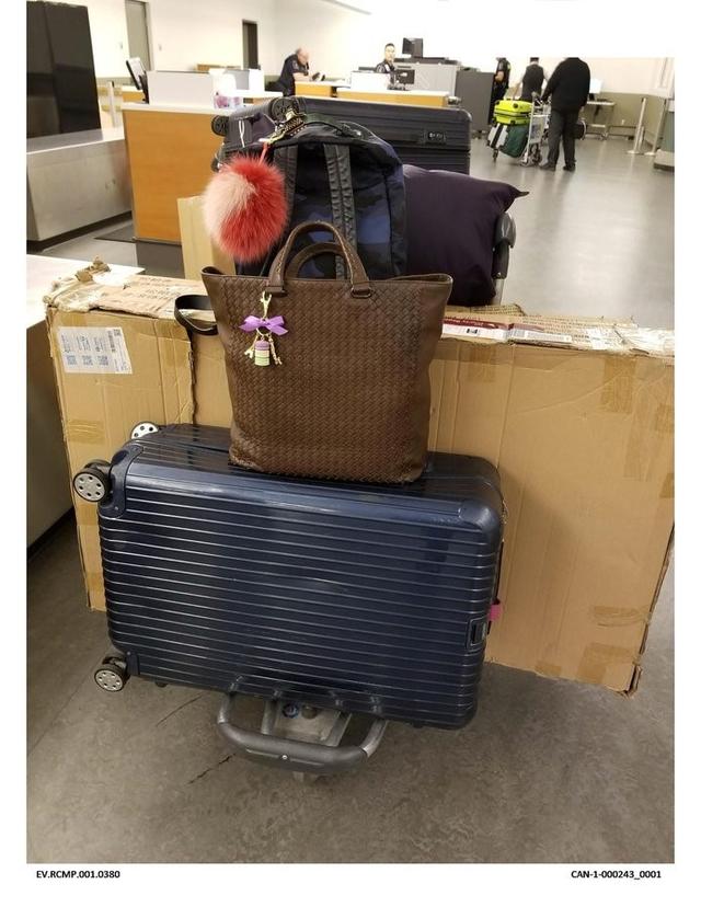 孟晚舟2018年12月1日在溫哥華機場轉機時的隨身提包和托運行李