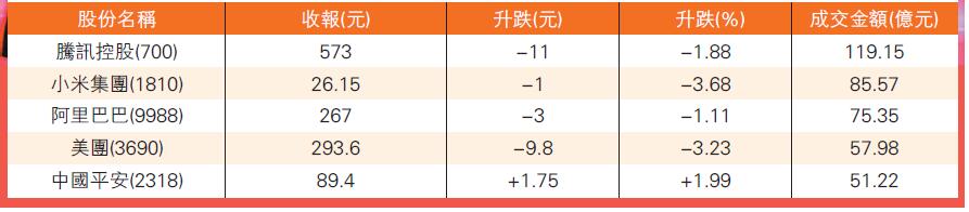 施政報告提出,香港上市未有盈利的生物科技公司及內地科創板股票,在符合特定條件下納入互聯互通標的,惟未包括第二上市股份。受消息影響,阿里巴巴(9988)、京東集團(9618)、網易(9999)跌逾1%。騰訊(700)及被大和降評級的小米(1810),全日分別跌1.9%和3.7%,連同跌2.3%的港交所(388),合力拉低恒指125點。