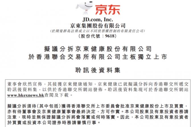 京東健康每股招股價介乎62.8至70.58港元,每手50股,入場費逾3560元,預計股份下月8日掛牌買賣。