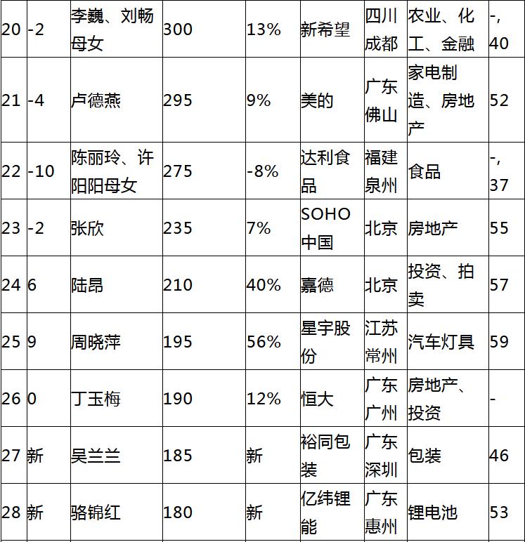 此外,繼承財富的有16位,佔比29%。新希望40歲的劉暢個人財富增長30億,達到270億。