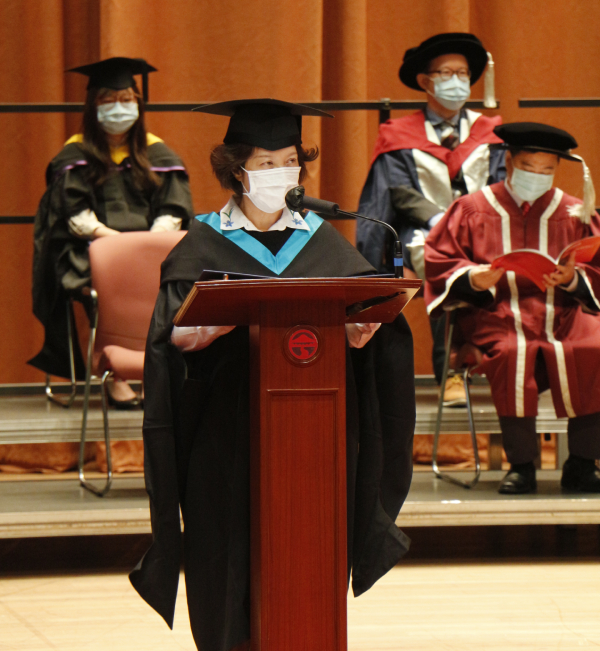 嶺南大學持續進修學院署理院長蕭秀燕寄語畢業生要保持樂觀積極的心態面對和接受未來挑戰。