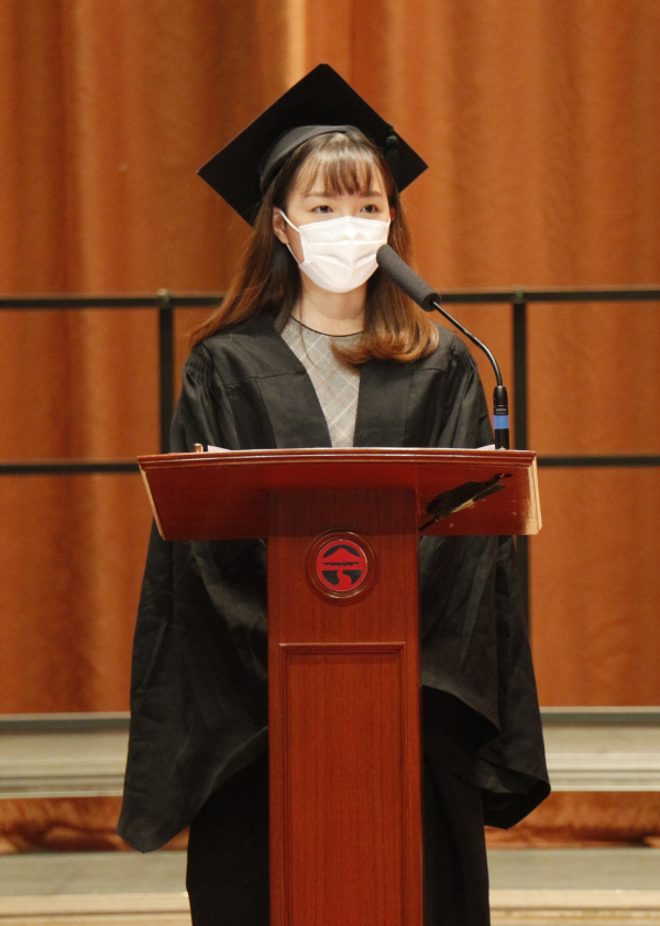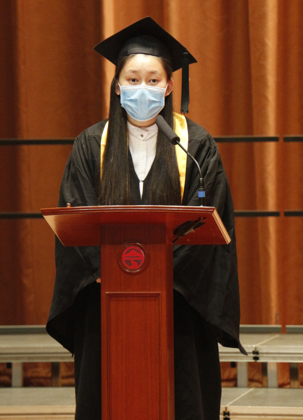 毅進文憑畢業生梁倩彤是其中一位獲頒授學業優異獎的學生,她與副學士畢業生陳詠心代表畢業生致辭。梁倩彤表示今屆畢業生經歷了艱難的一年,並克服了由面授課堂轉到網上上課的挑戰。她指要對學習抱持好奇心,不故步自封,並期望未來成就更多不可能;副學士畢業生陳詠心指校園生活使她更樂觀正面、學懂管理好時間及壓力,她更勉勵同學天無絕人之路,不要因過往的挫敗而放棄自己。