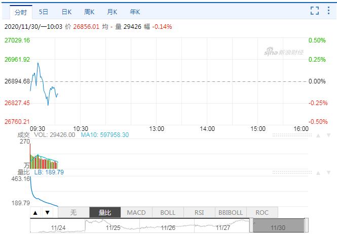 今日開盤,恒生指數低開0.15%,國企指數漲跌0.08%,紅籌指數跌0.52%,恒生科技指數漲0.07%。截至發稿時止,恒指報26856點,跌0.14%