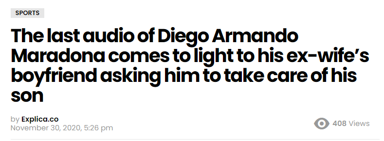 文章稱,馬勒當拿在談到自己的兒子時最為興奮。文中還寫道,馬勒當拿對鮑德里說話語氣頗為嫉妒。維羅妮卡是馬勒當拿的摯愛之一,也是他最小兒子迭戈-費爾南多的母親。