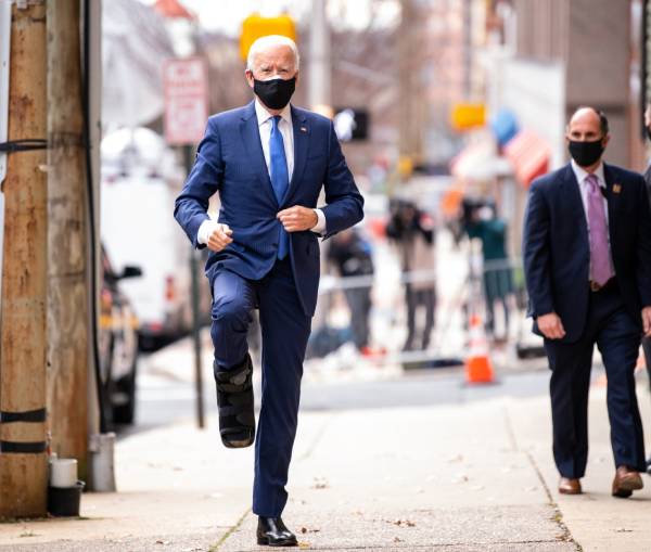據《紐約時報》當地時間1日消息,當選總統拜登在與寵物狗玩耍時滑倒致足部輕微骨裂後首次公開露面。現場圖片顯示,當日拜登受傷的右腳穿著一隻專用步行靴。