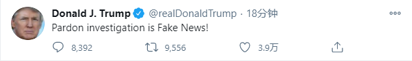 對此,特朗普發推稱:「赦免調查是假消息!」