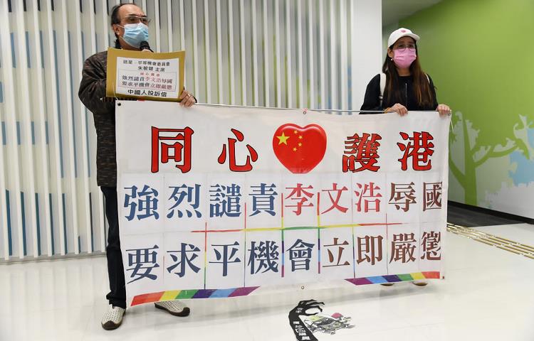 深水埗區議員李文浩日前在區議會會議中,討論「以普通話教授中國語文科」議題期間,稱「在國際間,中國人三個字等同於過街老鼠」,惹起絕大部分香港市民憤怒,今日民間團体「同心護港」3名成員前往平等機會委員會投訴他違反種族歧視條例,促請當局嚴正處理。