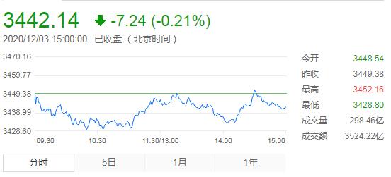 具體看,截止收盤,滬指報3442.14點,跌0.21%,成交額為3524億元(上一交易日成交額為3833億元);深成指報13970.68點,漲0.07%,成交額為4739億元(上一交易日成交額為4977億元);創指報2712.52點,漲1.10%,成交額為1854億元(上一交易日成交額為1913億元)。