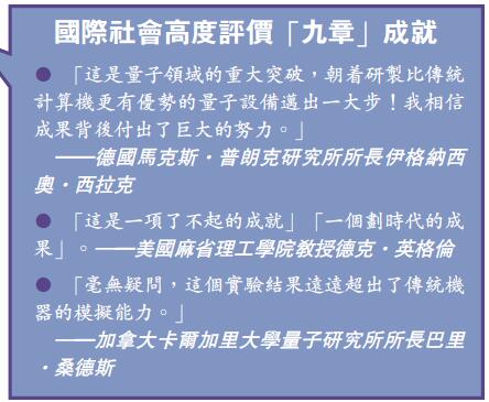 對於「九章」的突破,《科學》雜誌審稿人評價這是「一個最先進的實驗」「一個重大成就」,多位國際知名專家也給予高度評價(詳見列表)。