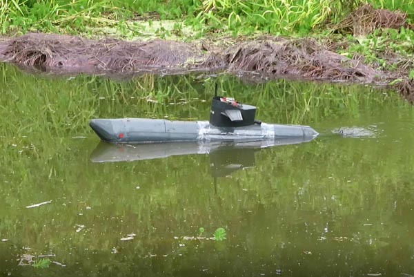 潛艇「鯊魚佬」在魚塘面緩緩推進。