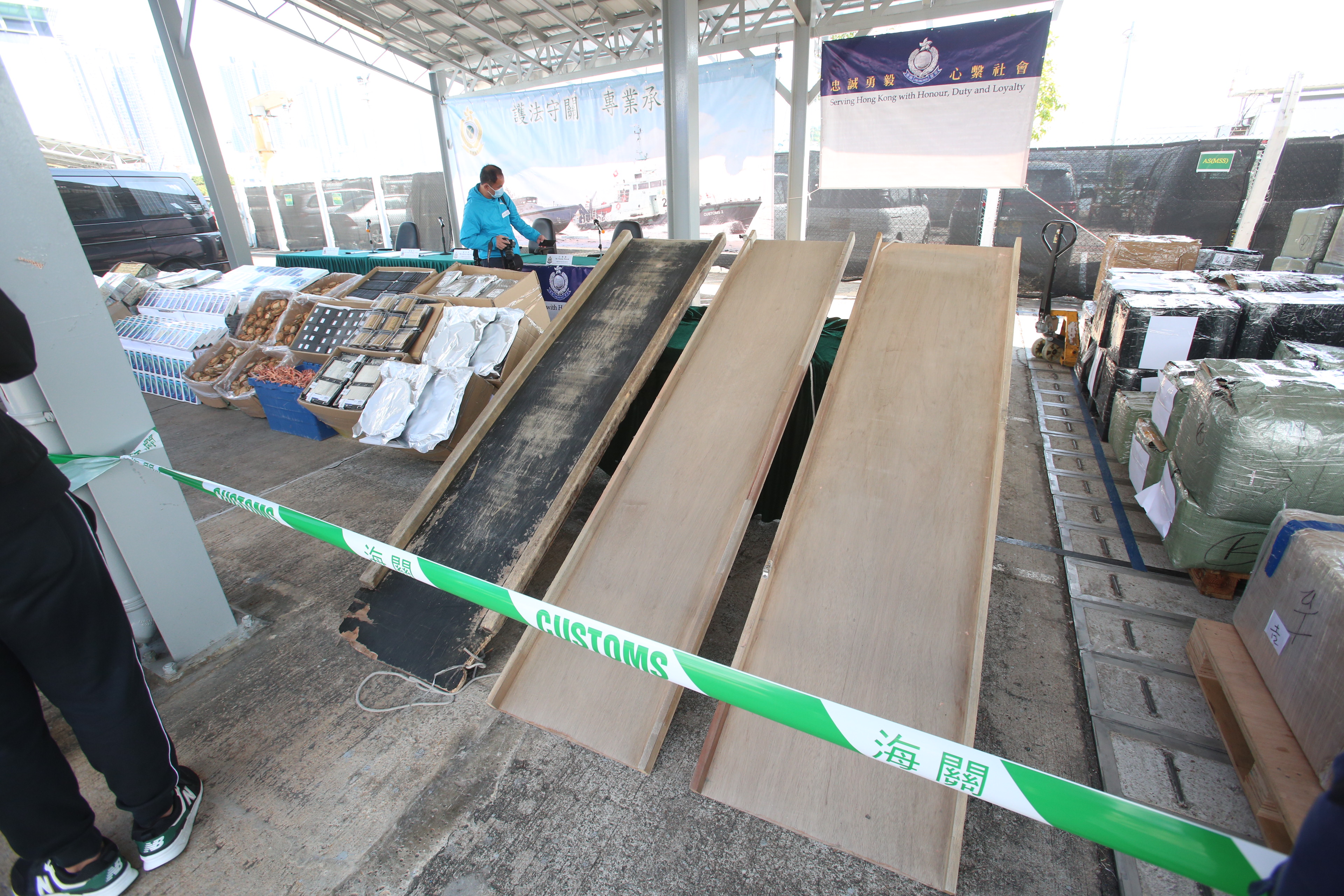海關港口及海域科海域行動課監督鄭文遠指出,在順隆街2輛7人車上檢獲12箱貨物,而在崗下村停車場1輛貨車上則檢獲94箱,總值約8000萬元。當中大量高價電子零件,包括集成電腦、電腦記憶體和記憶卡、新款手機。另外檢獲鮑魚、燕窩和中成藥,以及不同牌子的美容產品、手袋和化妝品。此外發現一批紅珊瑚,屬於國家1級重點保護水生野生動物,根據國家海關法和野生動植物保護法的規定,進出口紅珊瑚必須持有國家瀕危辦的進出口證,並要向內地海關作出申報,相信因疫情關係內地人士無法來港購物,走私集團覷準機會將貴價物品走私到內地,估計今次如成功將貨物走私進內地,可逃避內地稅項約5000萬元。