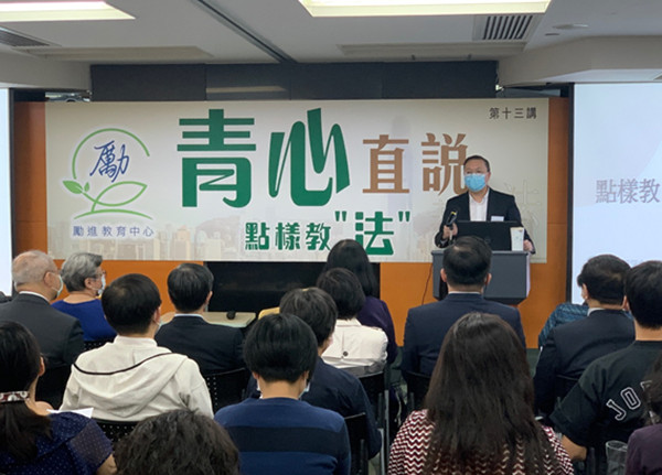 主講嘉賓林定國向參加者講述他對如何向學生教授正確的法律知識和法治觀念的見解。