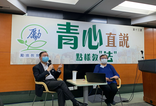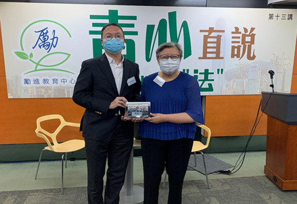 勵進教育中心指,它們在11月20日於教育局合辦「青心直說」第13講,並邀請了消費者委員會主席林定國擔任主講嘉賓,而林定國與嘉賓主持的理事會主席范徐麗泰在講座中與約130位參與者分享如何在學校宣揚法治和守法精神等意見及經驗。