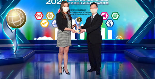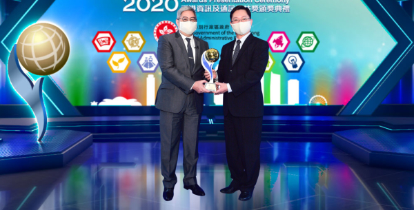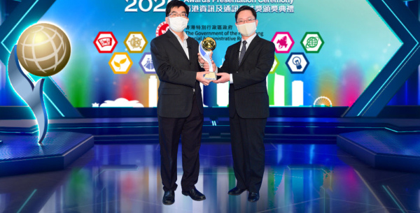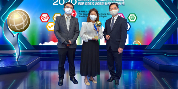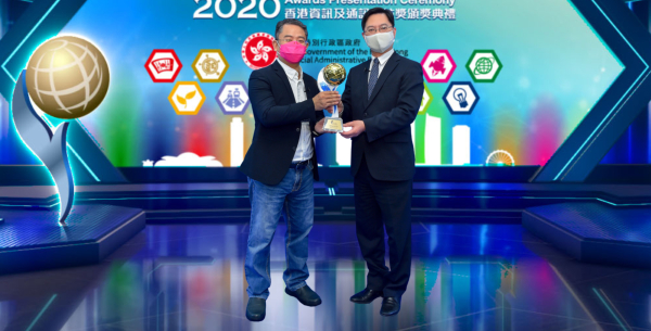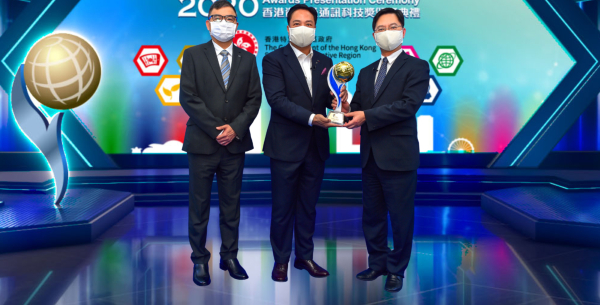 創新及科技局局長薛永恒也在頒獎典禮上頒發獎座予8個獎項類別的大獎得主,當中包括香港城市大學的李曉婷憑「可穿戴紗線應變傳感器」獲得學生創新大獎、入境處憑《當科技遇上優質服務:新一代智能身份證系統》獲得商業方案大獎和Blutech IoT Ltd憑「智能洗手間AIoT系統」獲得資訊科技初創企業大獎,而Blutech IoT Ltd亦是2020年香港資訊及通訊科技獎的全年大獎得主。