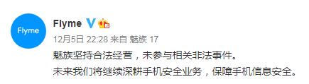 魅族表示,魅族堅持合法經營,未參與相關非法事件。未來我們將繼續深耕手機安全業務,保障手機信息安全。
