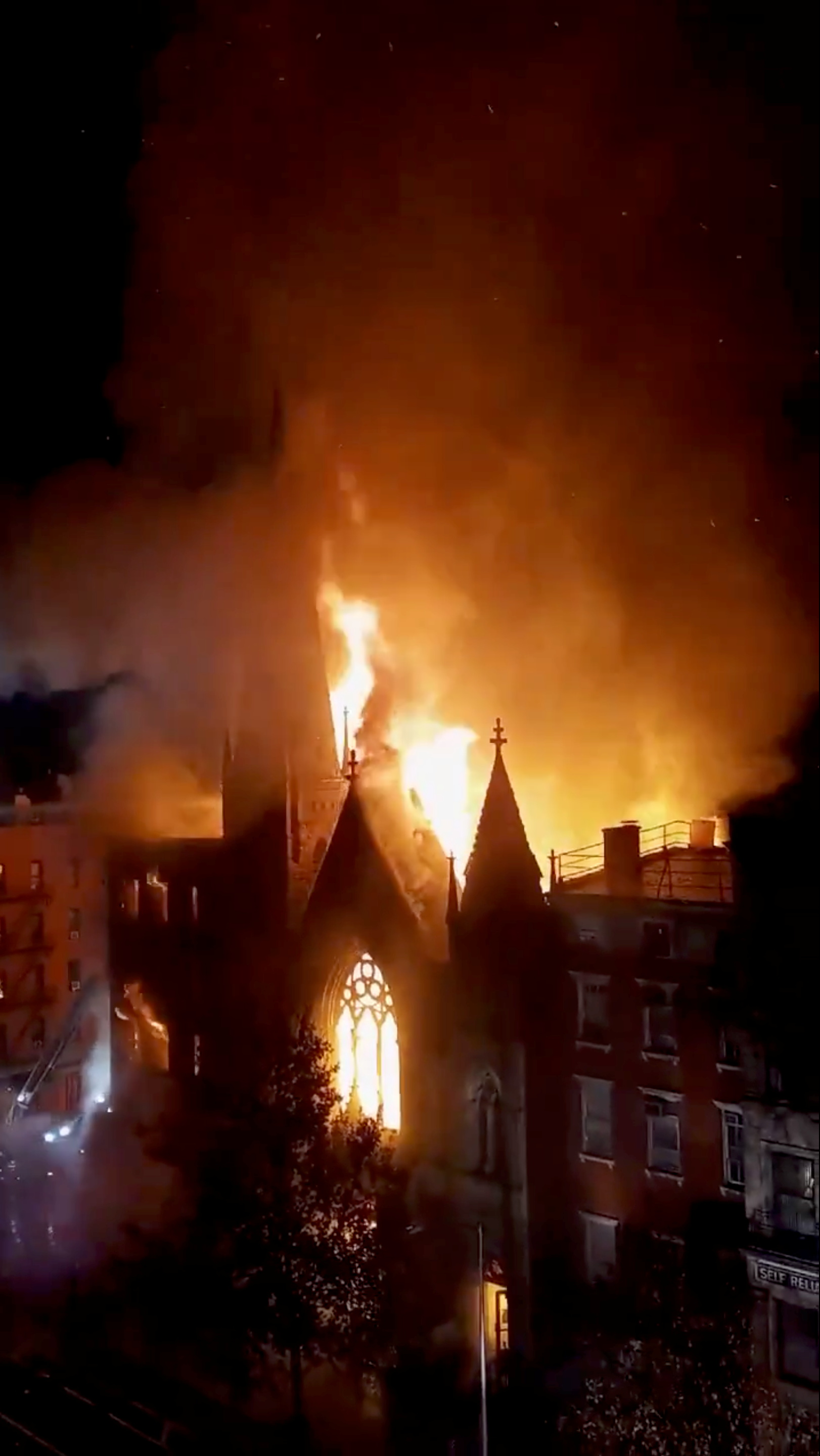據悉,當地時間清晨5時許,紐約曼哈頓下城歷史古老的中學院教堂遭到大火吞噬。火苗從教堂隔壁的一棟5層樓空建物竄出,隨後燒至教堂,蔓延速度極快。