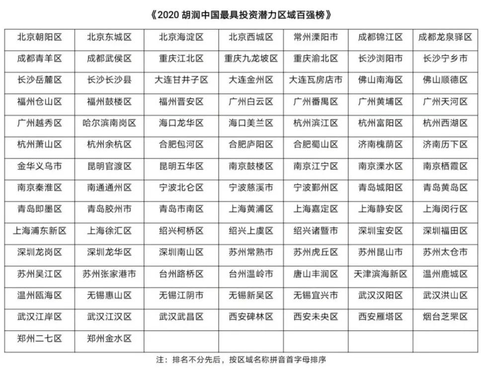 12月6日,胡潤研究院首次發布《2020胡潤中國最具投資潛力區域百強榜》,上海浦東新區位居榜首,其次是深圳龍崗區、北京朝陽區、深圳寶安區和北京海淀區。