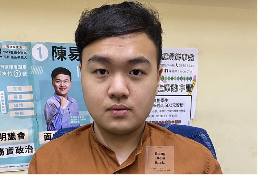 西貢區尚德邨區議員李嘉睿亦被捕,其fb今日中午過後發文稱,「消息:今日清晨六點李嘉睿被警方上家門帶走,稱與中大畢業遊行有關,只知現時在寶林,律師正前往了解中」。(記者 周偉立)