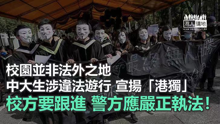國安處高級警司李桂華7日於記者會表示,本年11月19日凌晨時分至清晨6時,在香港中文大學校園內包括聯合書院、崇基書院和新亞書院等共30處地方發現有塗鴉,內容主要用漆油畫上有關「港獨」的字眼。至當日中午12時20分,當時校方宣布畢業禮會在網上舉行,但仍有約90名人士在校內進行遊行,參與的人士包括有穿畢業袍的人士,亦有黑衣人。遊行路線由港鐵站開始至2號橋經百萬大道,最後在正門解散,時間約維持1小時30分鐘左右。