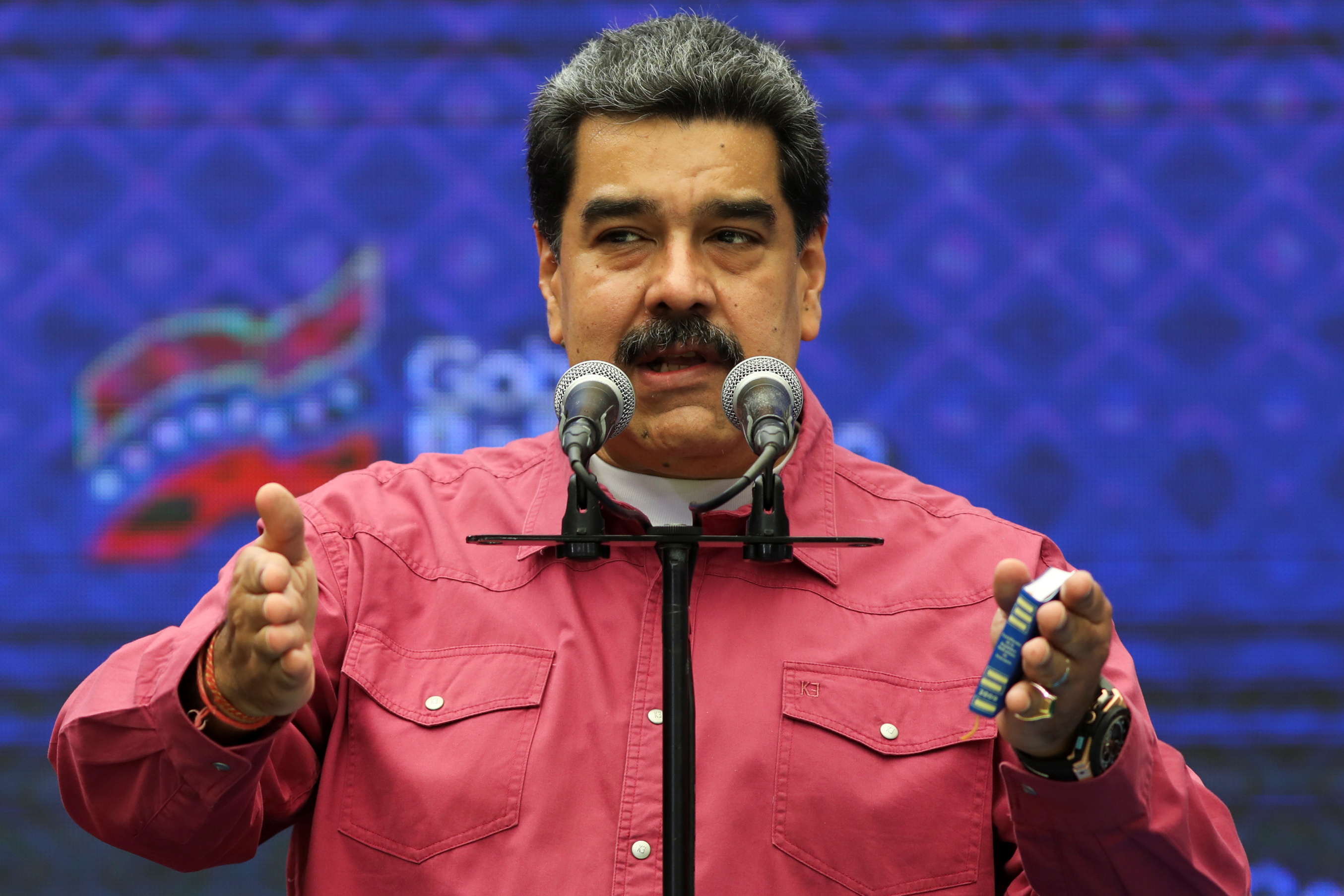 周日,委內瑞拉總統馬杜羅在議會選舉投票後對媒體發表講話。