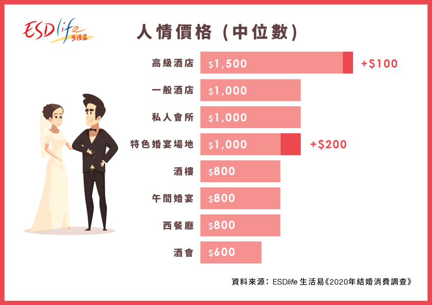 生活易2020年全港結婚消費調查結果的人情價格中位數。