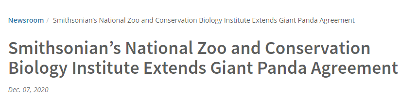 2000年,中國野生動物保護協會與美方簽署了為期10年的大熊貓繁殖研究合作協議,協議到期後,分別於2010年和2015年兩次延期,每次延期5年。上一個延期協議於本周一到期。