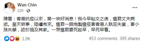 陳雲日前在社交平台發文,出言諷刺衞生防護中心傳染病處主任張竹君醫生的丈夫因癌症病逝是「好消息」;其后又指如何網民有何不滿,可以去信嶺南大學投訴解僱他。