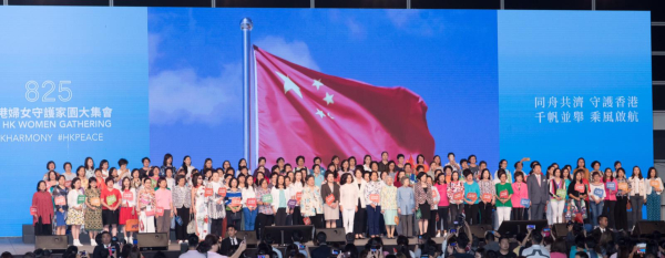 李愛平(後排左四)與各屆精英出席全港婦女守護家園大集會。