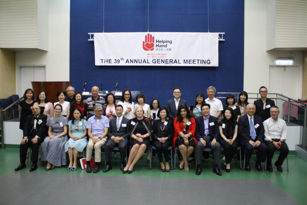 李愛平(前排左六)出席伸手助人協會會議,與各賢達策劃慈善活動。