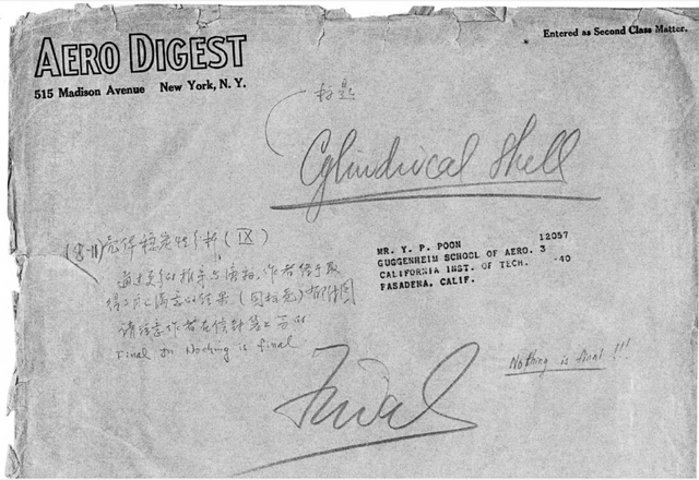 1941年,錢學森在美國《航空科學學報》發表科研成果《柱殼軸壓屈曲》一文,攻克了困擾航空界多年的難題。這篇文章僅有寥寥10頁,極為簡明,而錢學森在研究過程中僅編有頁碼的推導演算手稿就達800多頁,其中有些計算數字精確到了小數點後8位。論文完成後,錢學森把手稿存放到紙袋裏,並在紙袋外面寫下了「Final」(定稿)字樣。但他立刻想到,科學家對真理的探索永無止境。於是,他又寫上「Nothing is final」(永無止境)。
