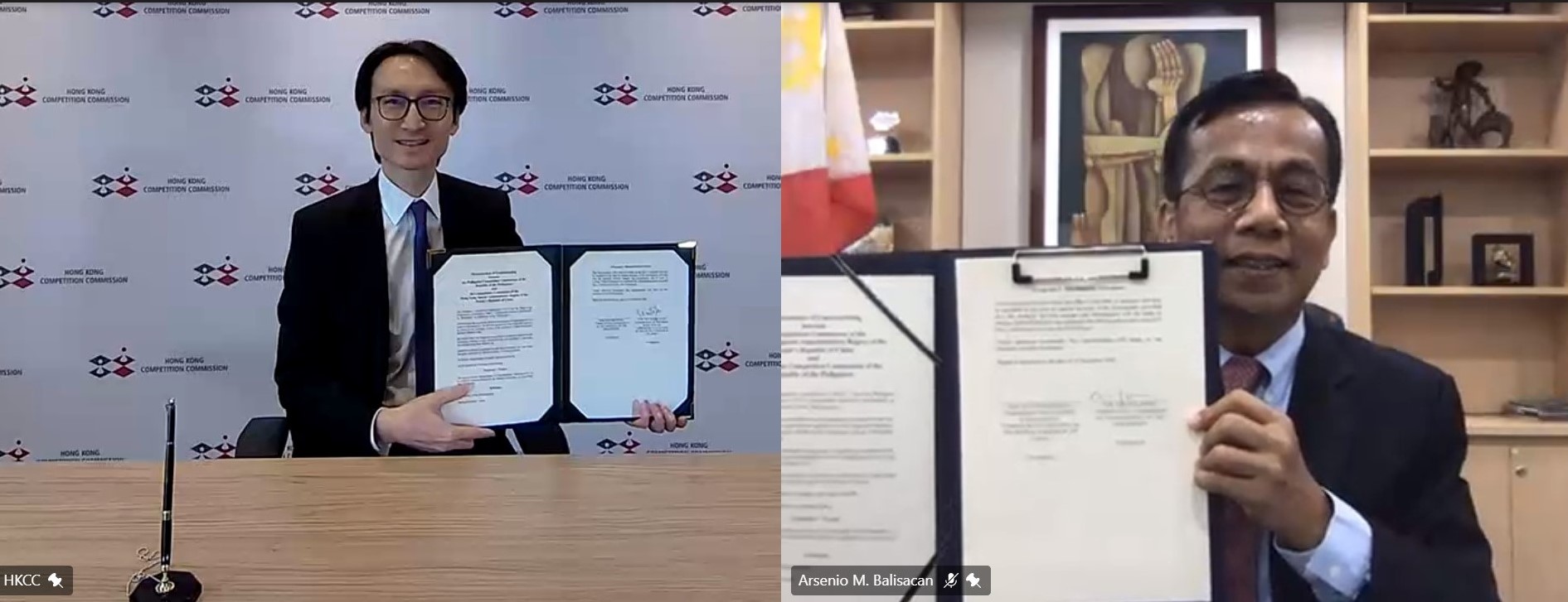 香港競委會表示,主席陳家殷與菲律賓競爭委員會主席Arsenio Balisacan在今日(14日)簽署諒解備忘錄,陳家殷指香港競委會很高興能與菲律賓競委會正式建立這框架,鞏固雙邊合作,他有信心備忘錄將為雙方帶來更多合作機會,從而提升香港競委會與菲律賓競爭委員會日後處理競爭事宜的整體能力及成效。