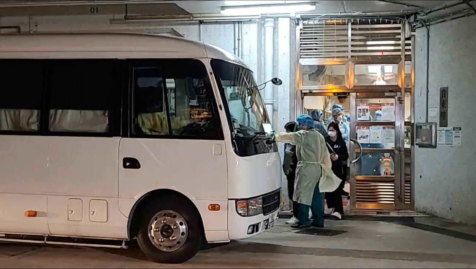 東頭邨貴東樓部分住戶14日晚開始撤離至檢疫中心(圖:fb直播)