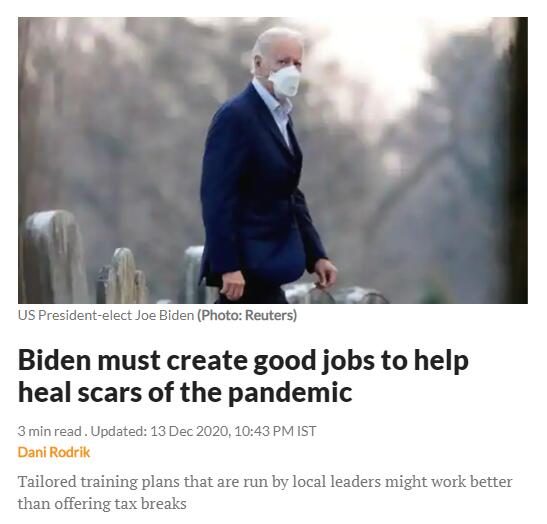 哈佛大學教授羅德里克認為,拜登上台對於美國中產階級就業是重大利好。早在新冠大流行之前,美國中產階級的就業空間就因為自動化、去工業化、全球競爭和「零工經濟」而不斷遭到壓縮。但幸運的是,拜登上台後可能會找出對策,緩解這一趨勢,促進經濟復蘇。