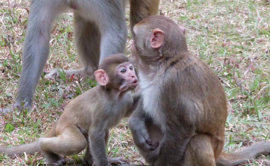 無論野外食物足夠與否,猴子經歷長久以來的人工餵飼,已變得依賴人類,尤其遊人多的假日,牠們空群而出,特別在石梨貝水塘巴士站及附近的琵琶山路停車場,猴子在樹梢、欄杆、山坡、汽車頂等地跳來跳去,伺機等待遊人拿出食物,當發現時即跳出來拿走,繼而迅速在一旁啃食。等食的猴子各式各樣,有小猴、斷臂猴、母子猴(母猴背著BB猴),更多是青年猴。牠們機靈、活潑,覓食時模樣專注,得到時一臉陶醉,這種展露真性情的憨態惹人喜愛。