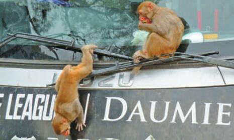 琵琶山路停車場成馬騮天堂,旅遊巴水撥成為牠們的玩具。