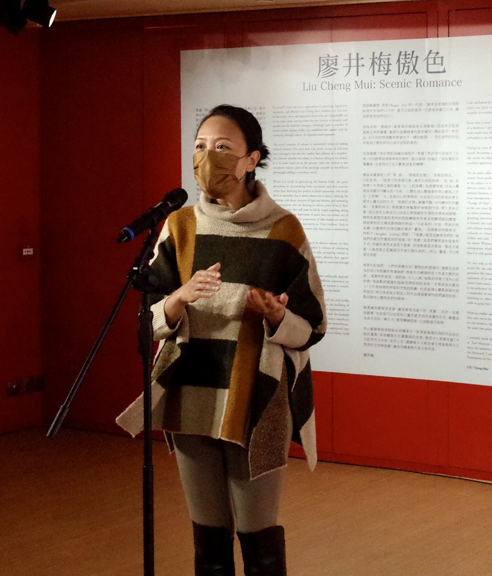 是次展覽,能欣賞到廖井梅擱筆十年後重新執筆的畫作,如《對峙》、《復歸》等。畫作題材均是女性人體,一新美術館總監楊春棠對記者表示:「在中國古代,人體畫是禁忌題材。廖井梅以女性角度繪畫女性人體,彰顯了時代變遷。」儘管創作的是西方藝術的經典題材,使用的媒介亦是油畫,但細看這些作品,線條使用了草書技法,富有動感,畫中人或坐或站,只見身軀不見頭部,耐人尋味。廖井梅解釋,創作時不會將之視為人體,而是一道風景:「繪畫女性人體其實在表達對於生活的感受,我身兼畫家、老師、母親角色,由於有些話語難以通過口頭表達,我便將自己面對的壓力釋放於畫中,進行自我對話。」因此,這一系列的女性人體作品也被命名為「我.語」。