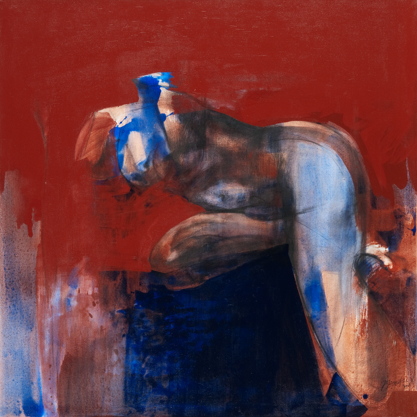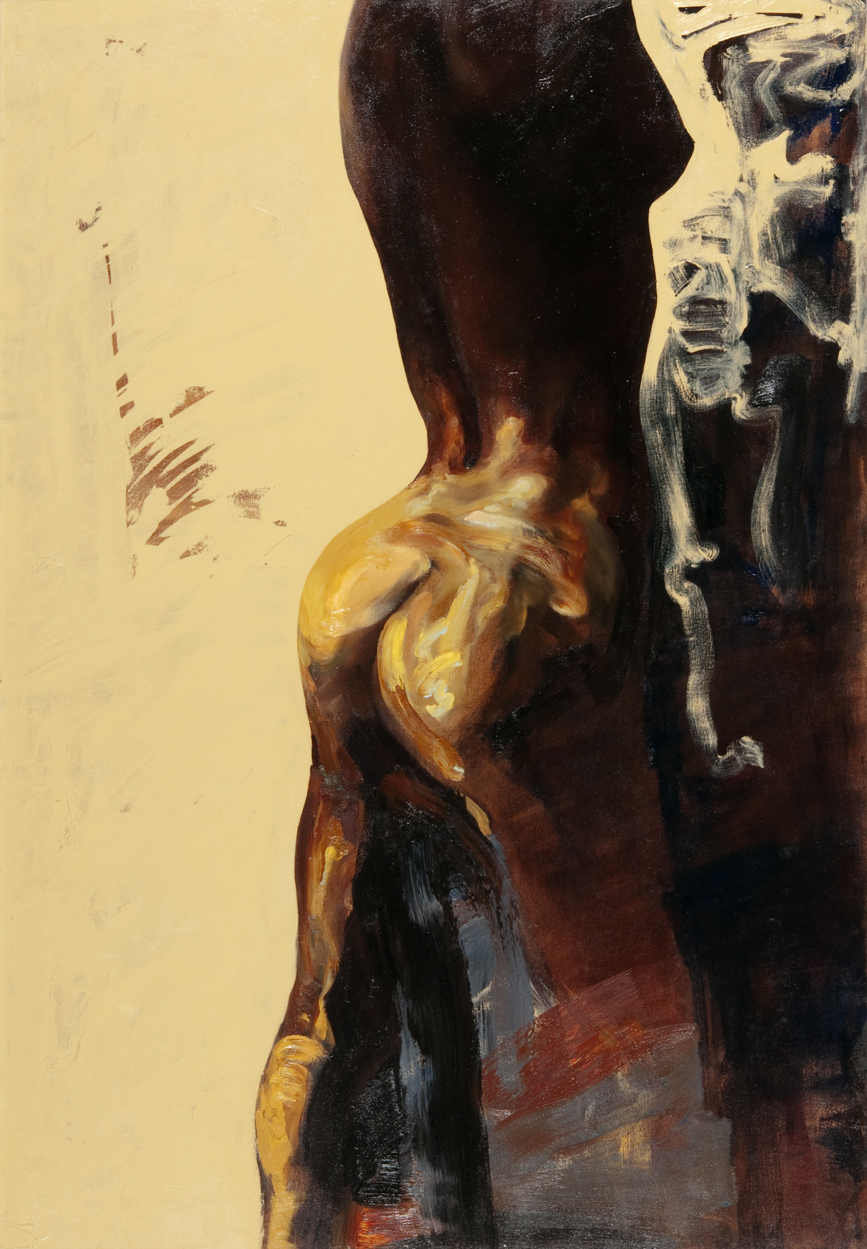 廖井梅作品《青海的記憶(四)》,2016年。畫家表示,繪畫馬和人體同樣想表達矛盾的力量感。