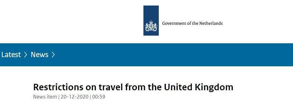 隨後,荷蘭政府發表聲明稱,在荷蘭也發現了英國的新冠病毒變異,目前來自英國的航班已被暫停。